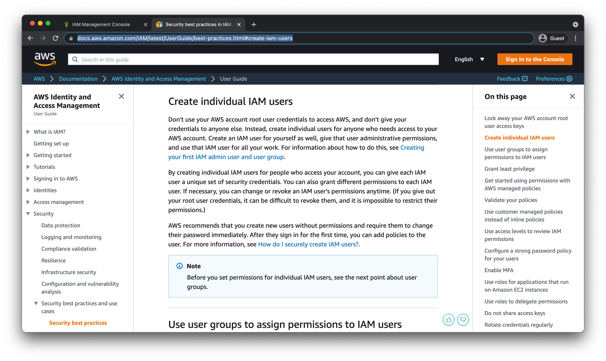 Here is the AWS Security Best Practices page. I highly encourage you to read over that documentation as we will only be covering a few items from the list.