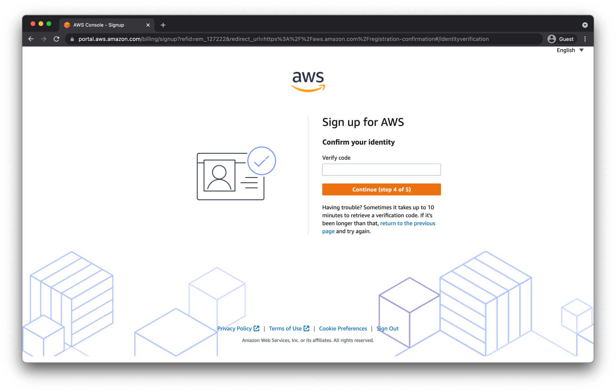 Fill out your billing information and click "Verify and Continue (step 3 of 5 )"
