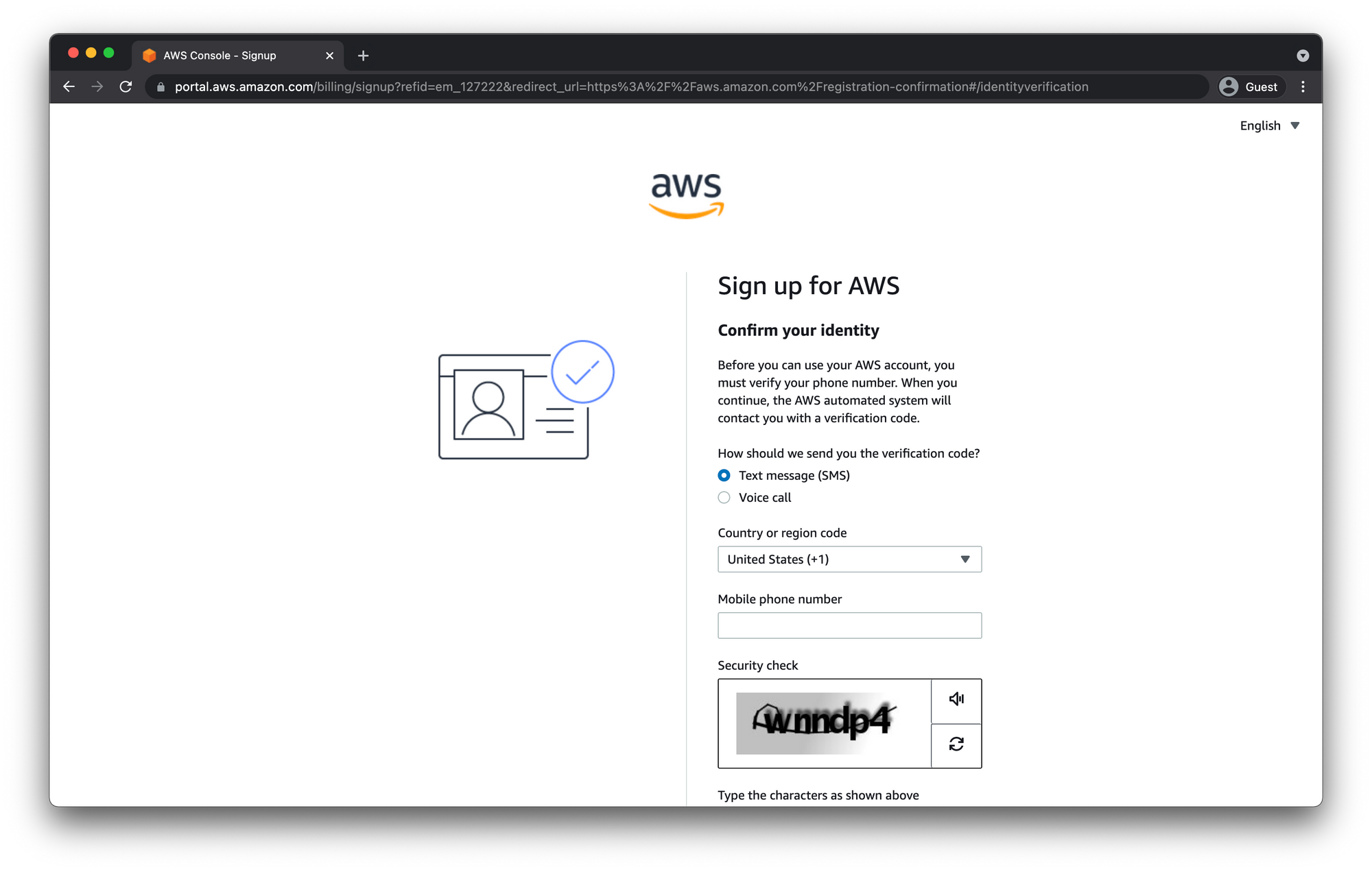 After filling out your billing info you will be asked to confirm your identity by either SMS text message or a phone call.