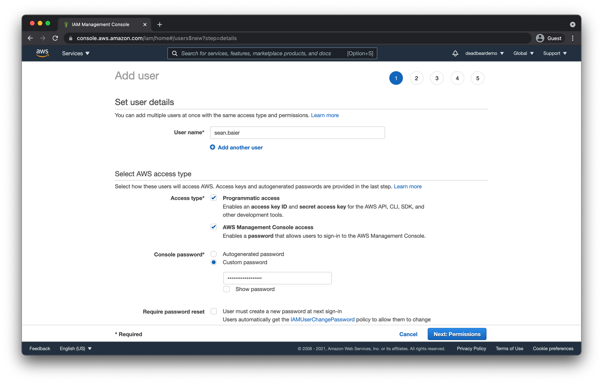- Since we're going to be logging back in with this user in a minute let's also uncheck the Require password reset box as well.
