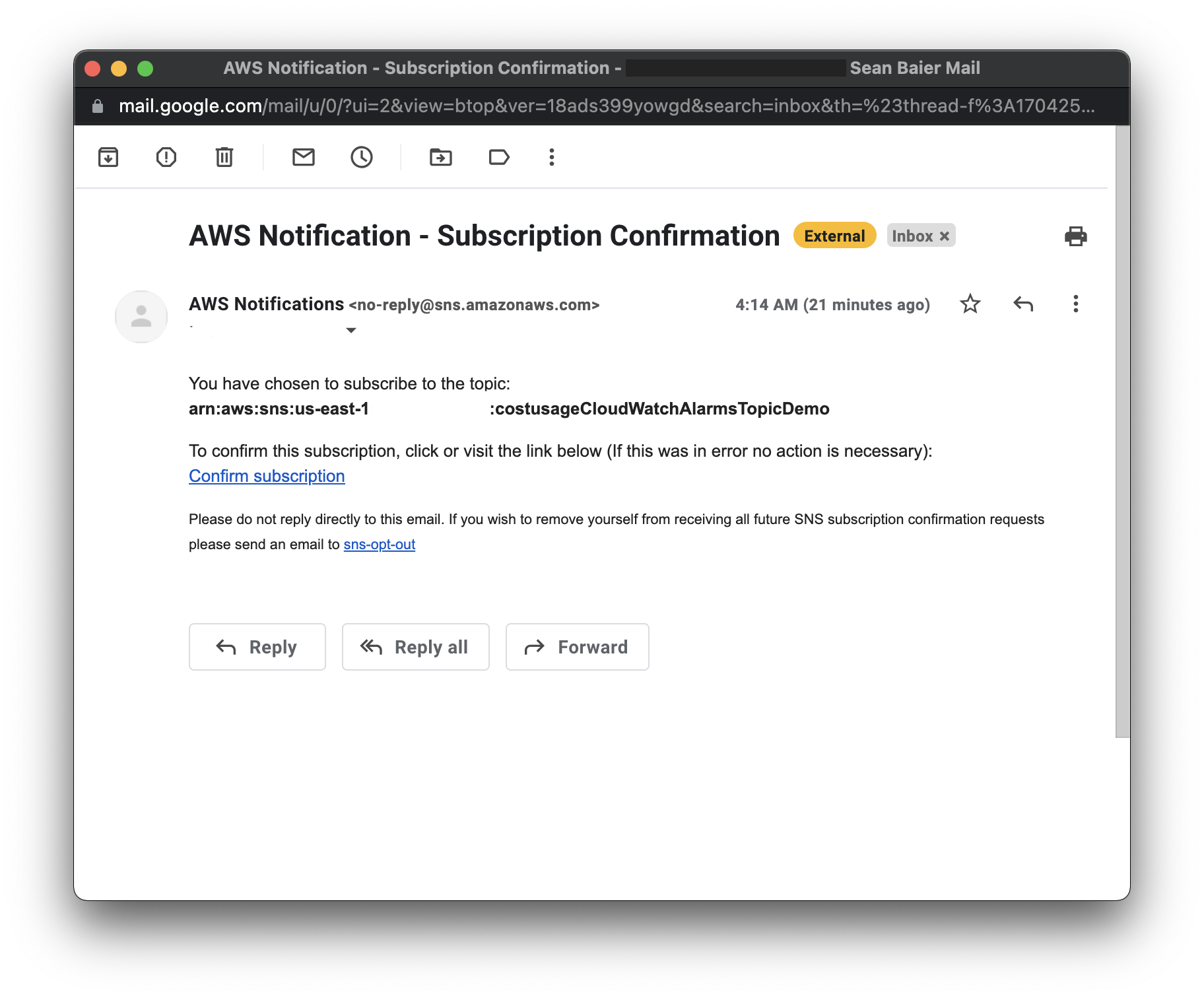 We can also setup an alarm that will notify us if the cost usage exceeds a certain amount.